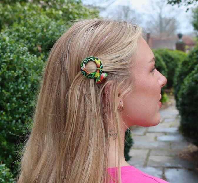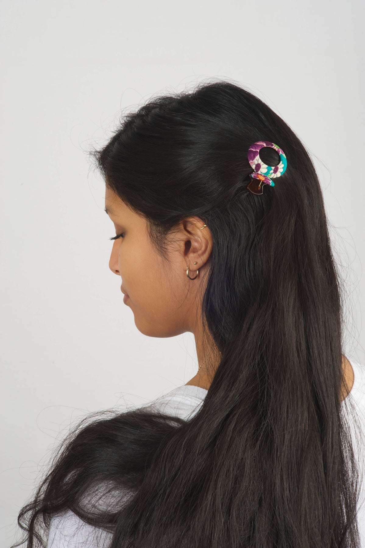 Kimono Clips started with a love for Japanese textiles and has grown into a full line of beautiful, comfortable hair accessories. Our curated vintage and contemporary Japanese fabrics will be sure to attract new customers and keep loyal buyers returning to find new and pleasing patterns. These sturdy clips come in a shape for every kind of hair from the thickest to wispy fine. Kimono Clips comfort and usefulness create a winning strategy in the growing market space for hair accessories.Colors and patterns are curated by our team at Kimono Clips. Because of the custom nature of the clip, each style is unique and may or may not come as pictured.
