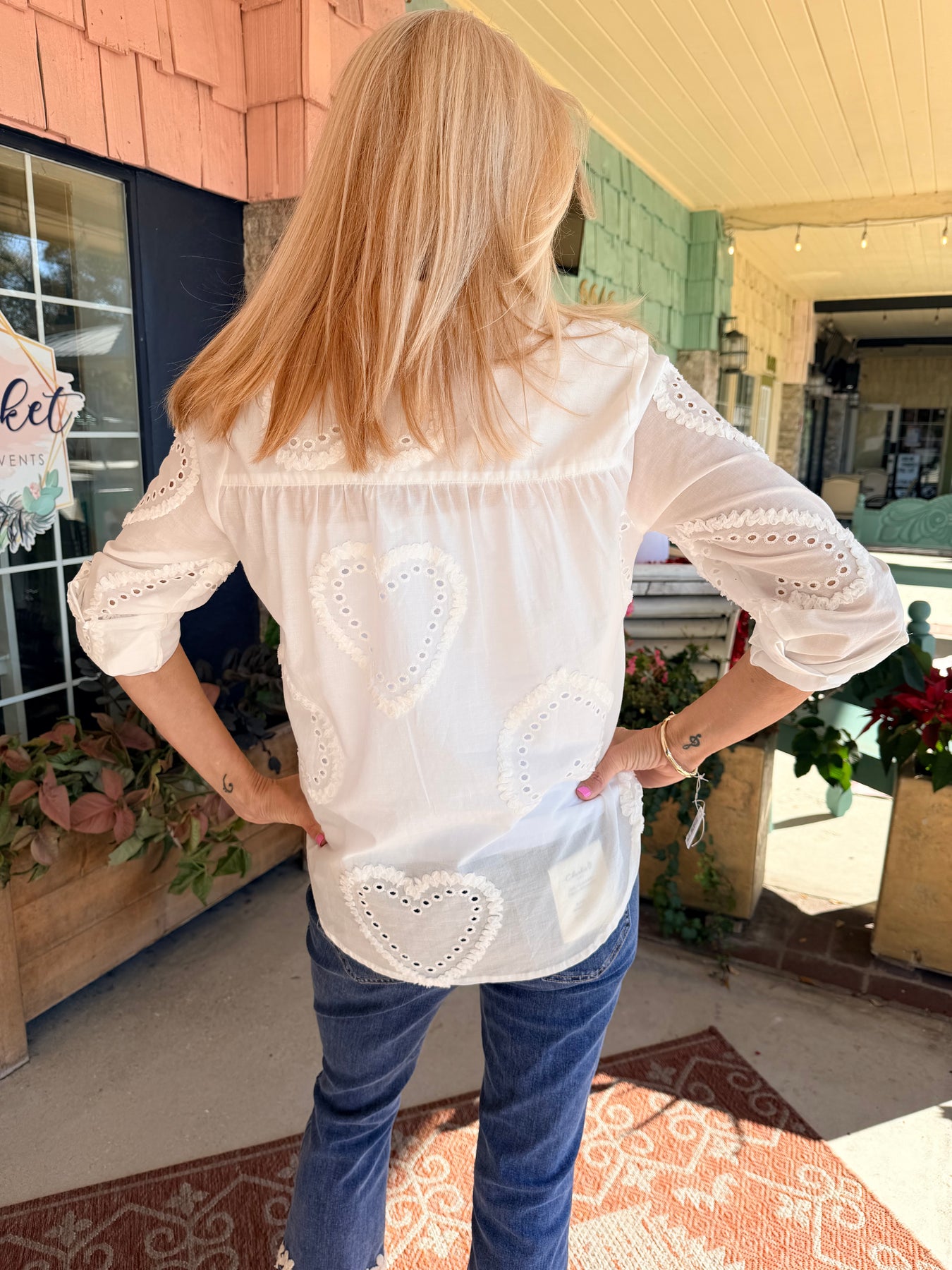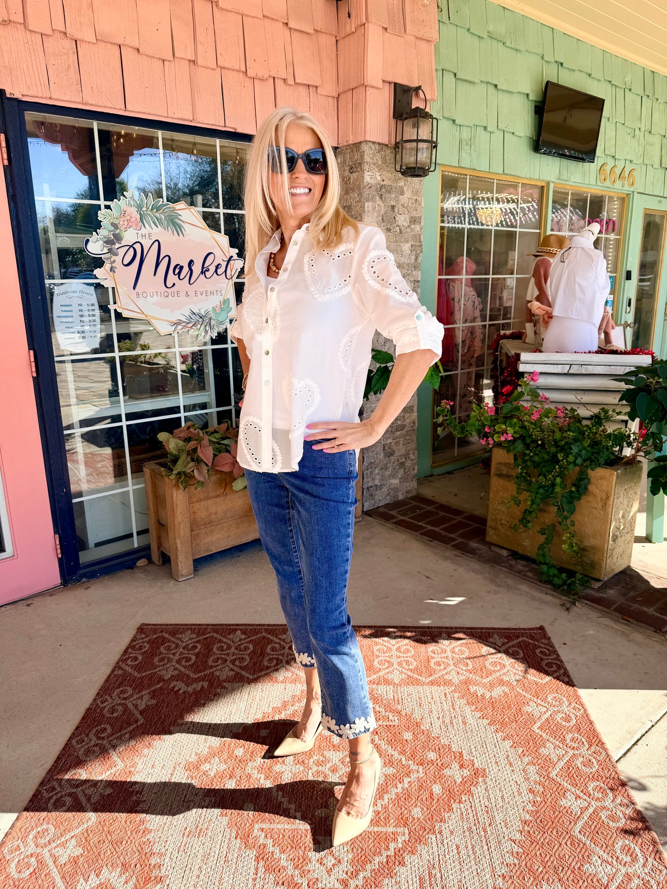 Charlie B Textured Fabric Long Roll Up Sleeve Button Down Blouse - White