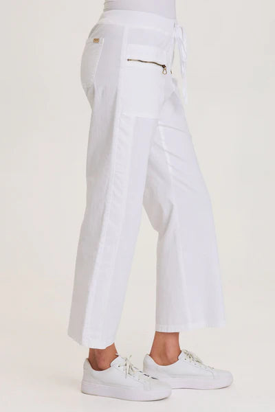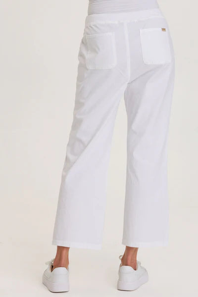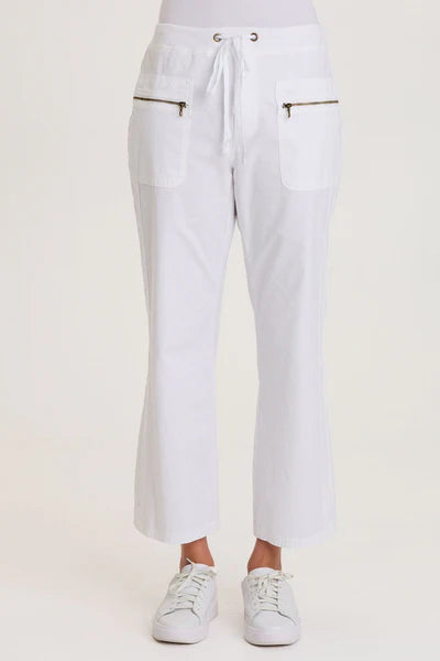 Clean flared leg with front and back pockets, brass zipper details and a drawstring waist have Darrow above the pack!