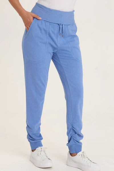 A twist on a jogger, Yaegar features a slim leg with traditional XCVI leg ruching and a fold-over waistband.