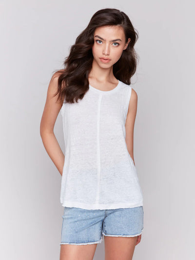 Radiate confidence with this sleeveless white linen blend top, perfect for both casual and elegant days. Its flattering fit ensures an irresistible look, easily pair it with your favorite pieces for effortless chic, natural charm this spring and summer!
