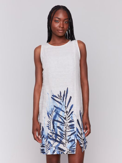 Step into elegance with this chic sleeveless dress in green celadon, featuring an alluring slit that adds a touch of sophistication. Crafted from a breathable linen blend, it ensures you stay cool and stylish. Whether you're headed to a casual outing or a formal event, this versatile dress is your perfect spring and summer companion.