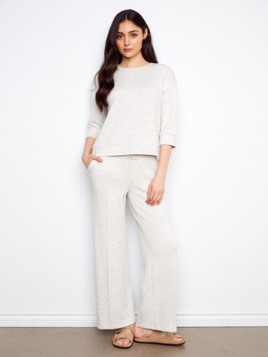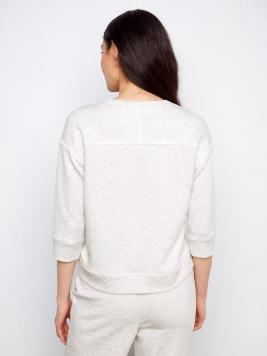 Soft Scuba 3/4 Sleeve Top With Blanket Stitch
