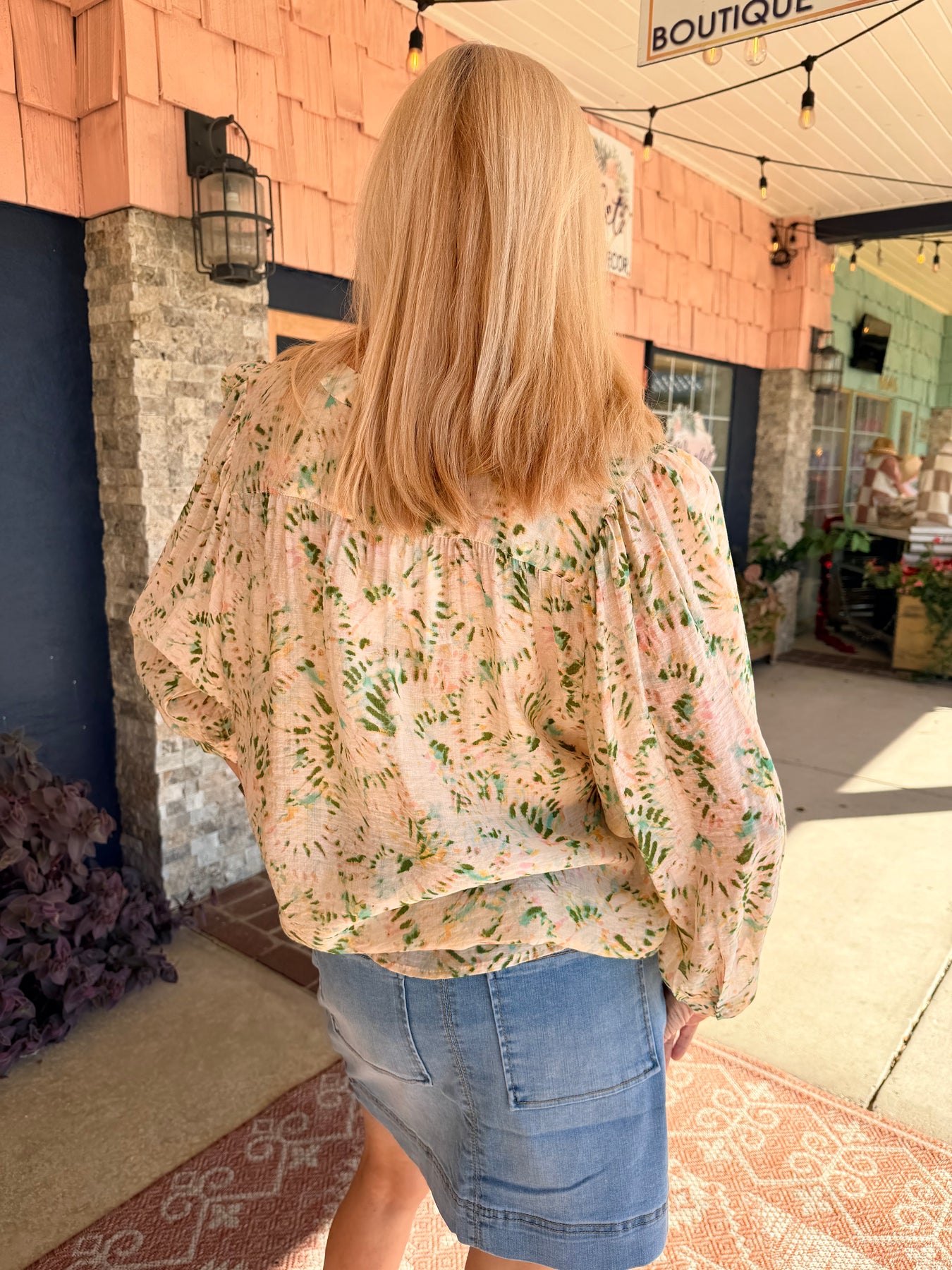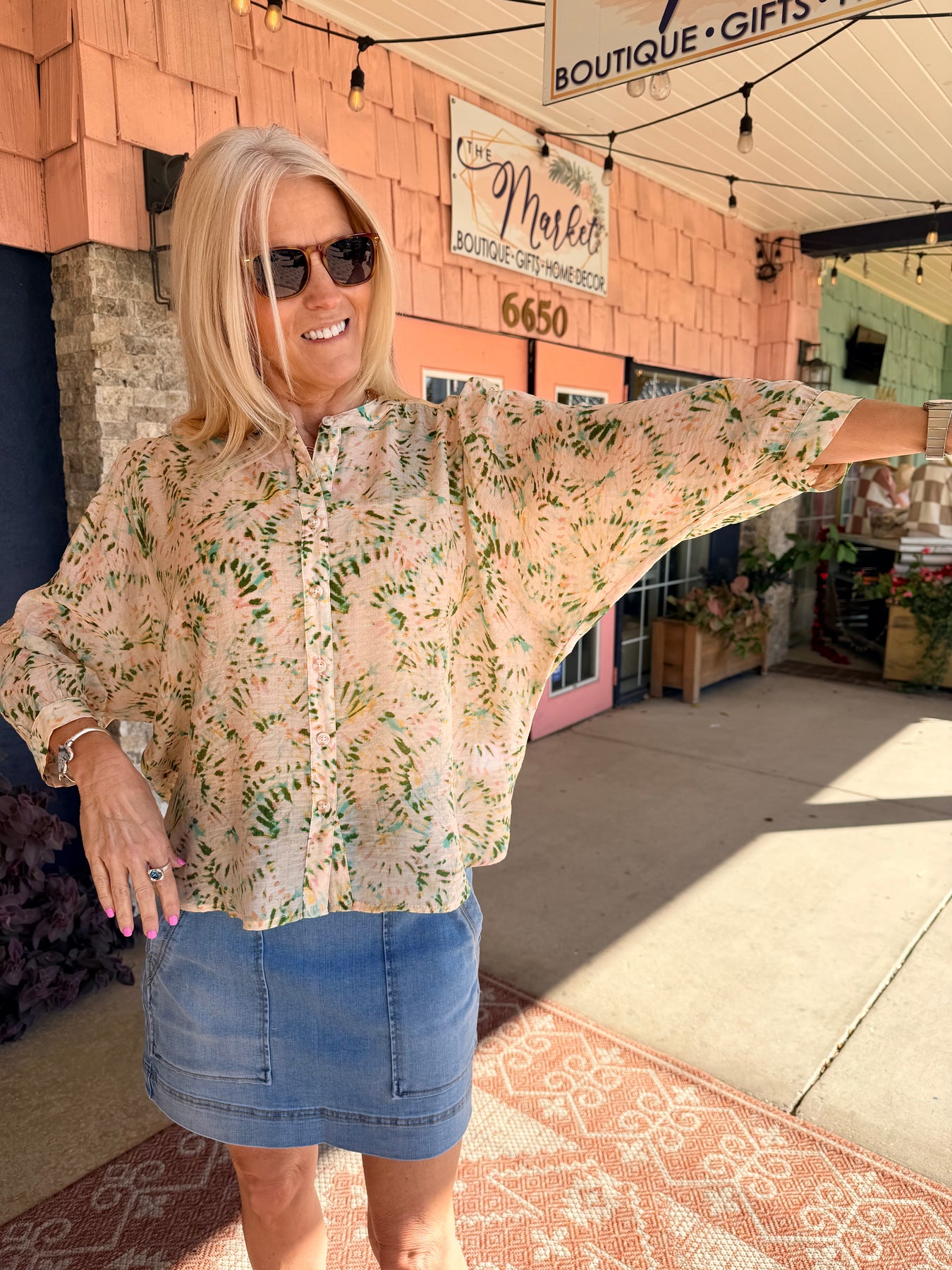 Float effortlessly from one place to another in our lightweight dolman sleeve blouse crafted from luxuriously woven fabric adorned in an elegant print. The notch neckline offers a touch of stylish breathability, while meticulously designed with fabric-covered buttons.