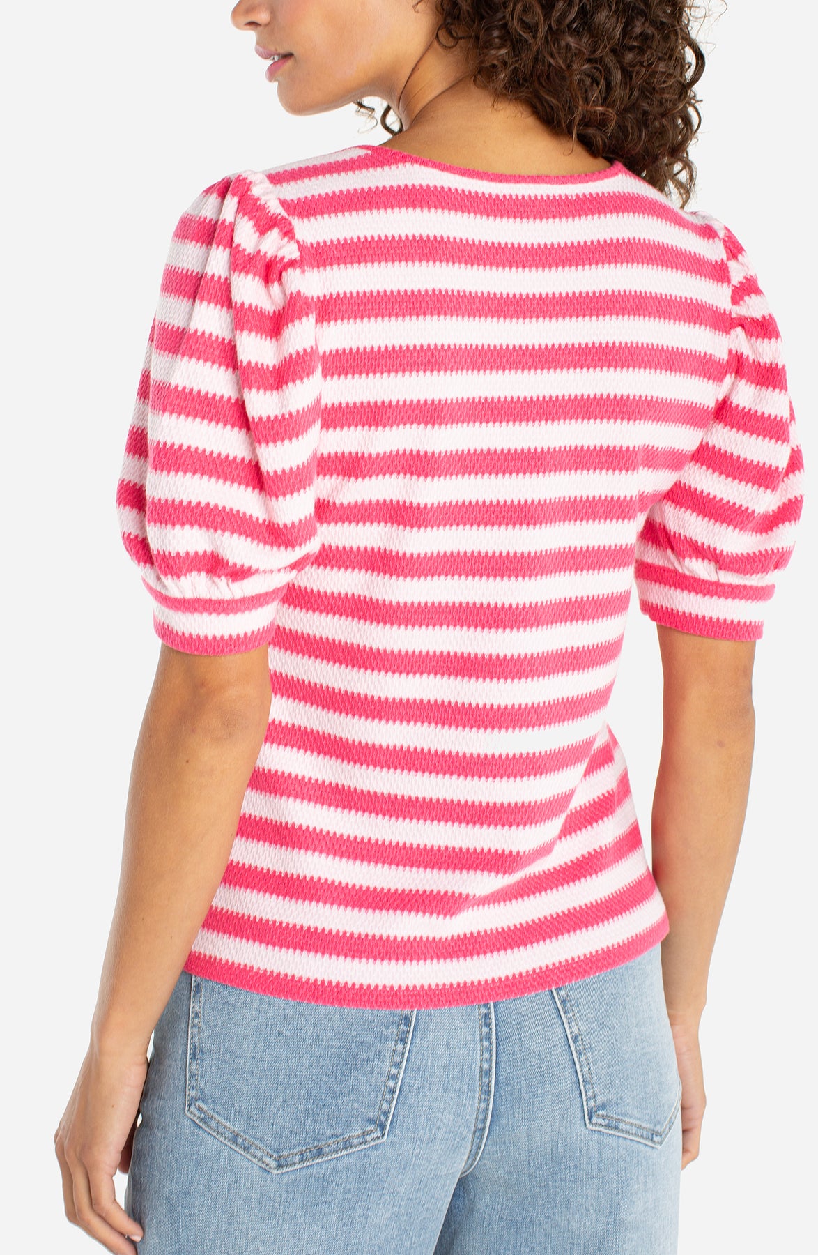 Liverpool Half Sleeve Scoop Neck Knit Top - Pink Multi Stripe