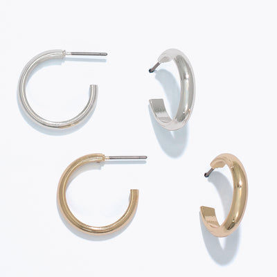 Earrings-Duo Gold + Silver Hoops