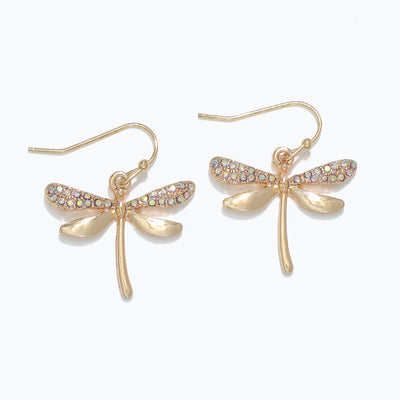 Earrings-Gold & AB Crys Dragonfly