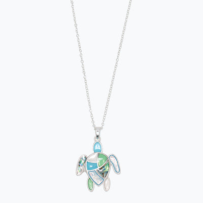 Necklace-Slvr Turtle w Blues + Gree