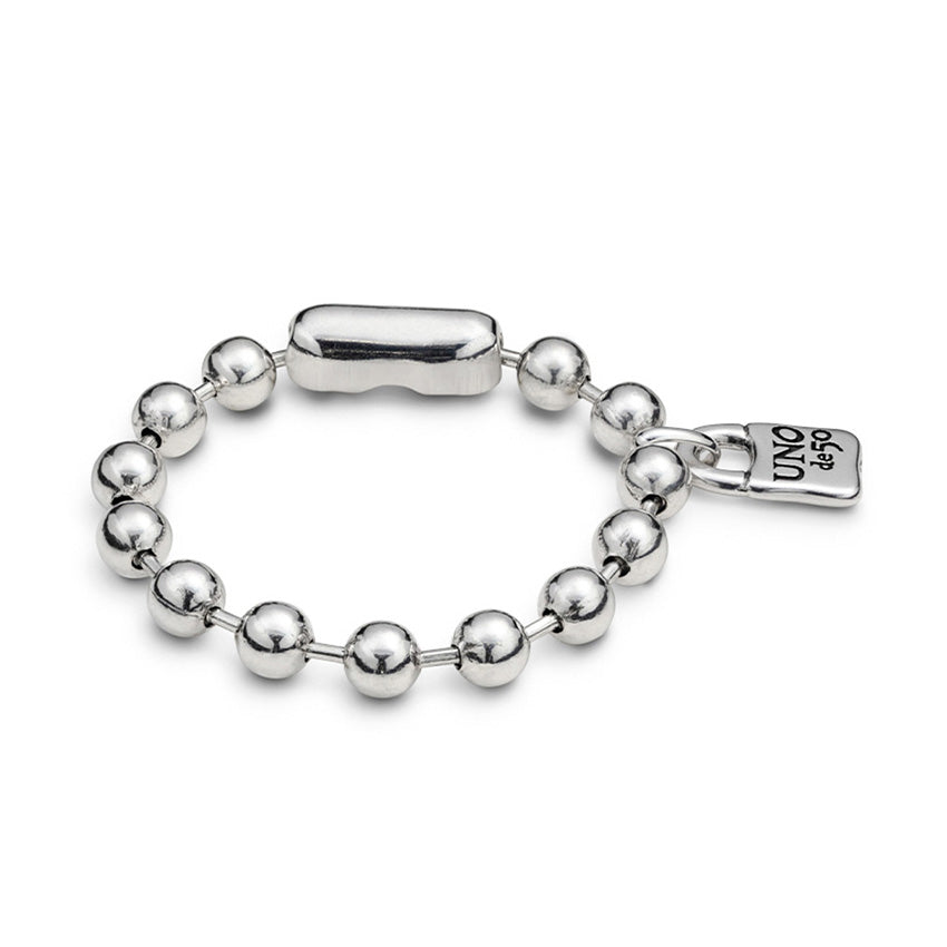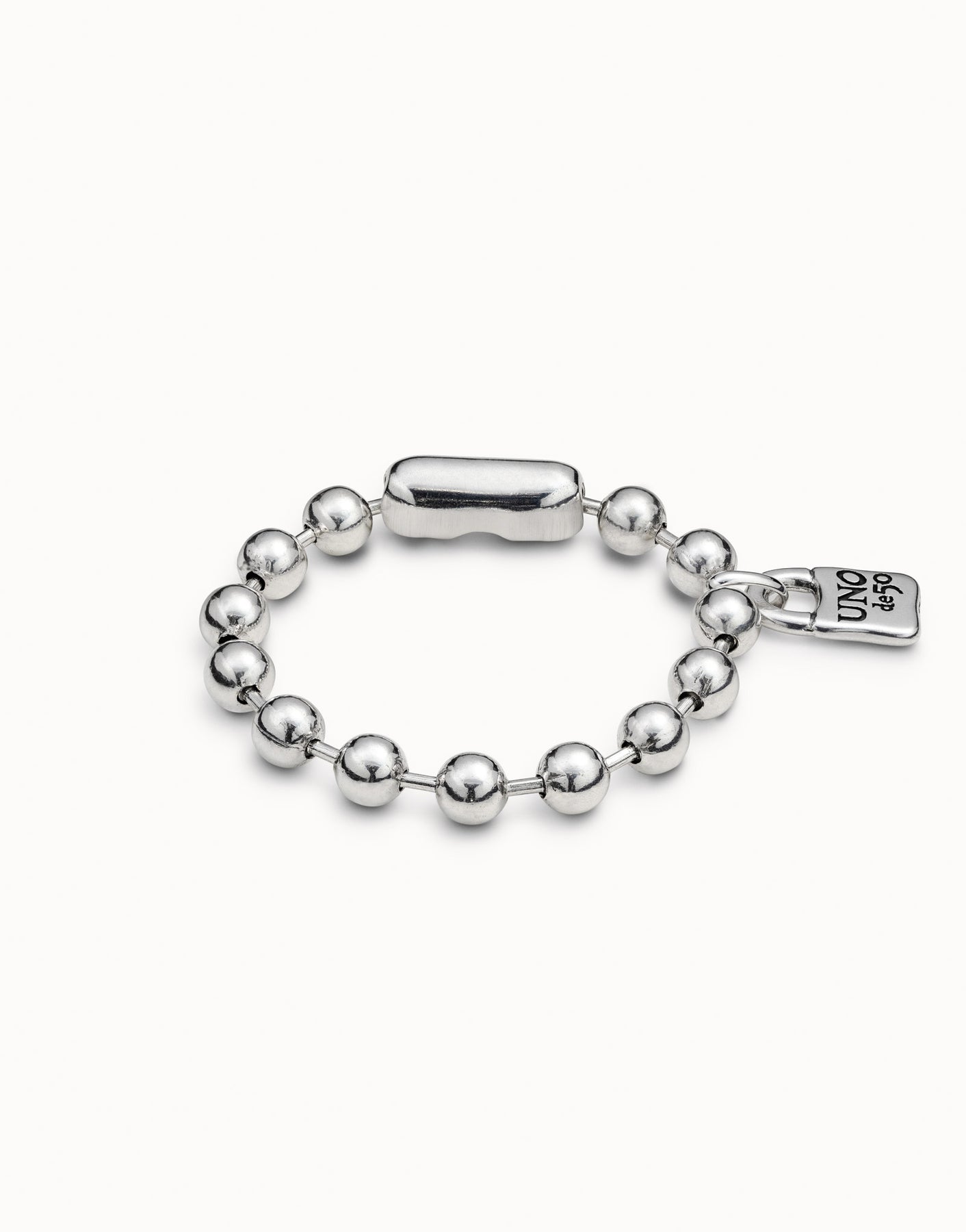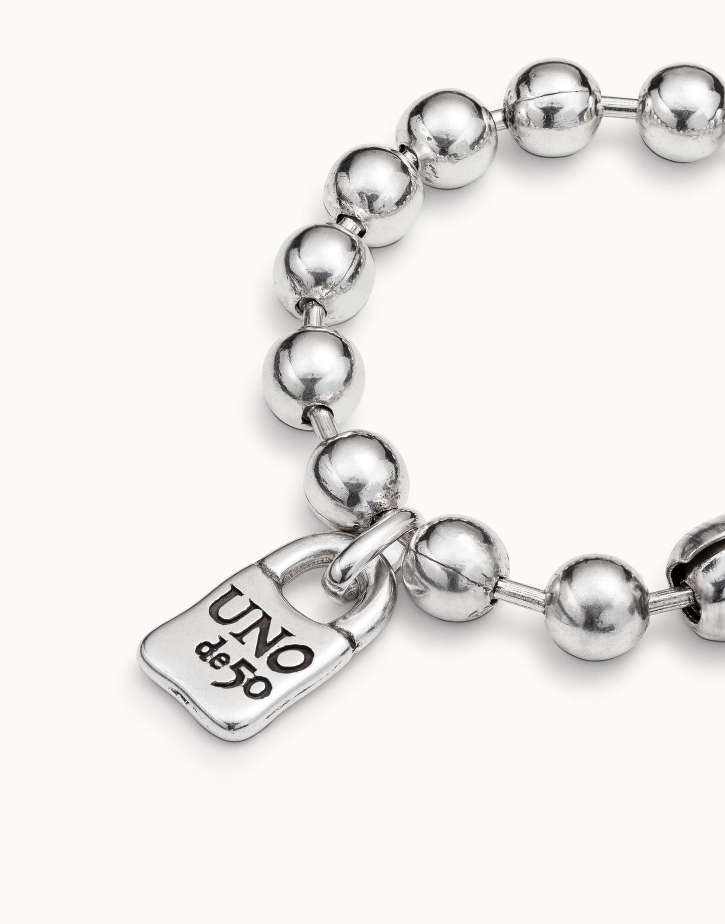 Original unisex bracelet made of multiple pieces with silver-plated balls that end with a connector. It includes the classic padlock of the brand as a charm. A unique jewel designed by UNOde50 and made in Spain under a 100% handcrafted process.