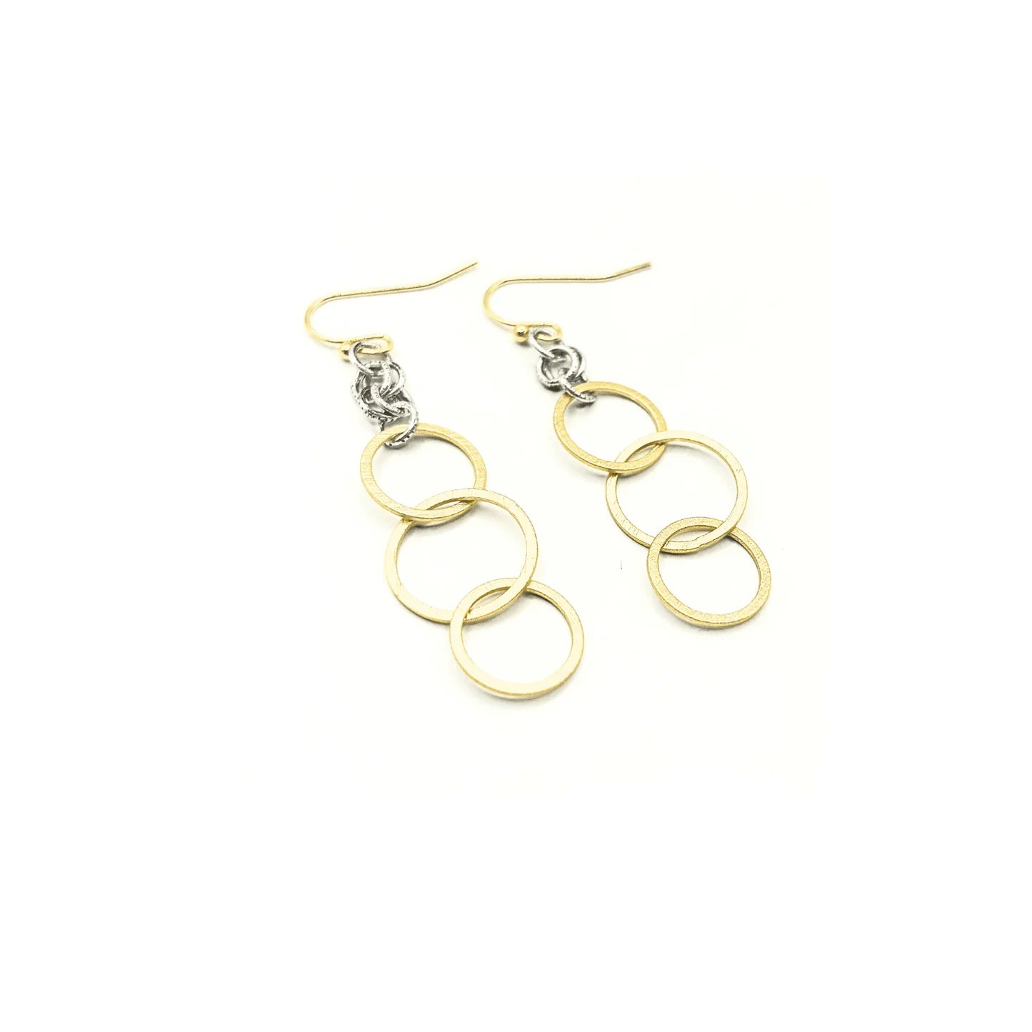 These mixed metal earrings from the erin gray allure collection feature three brushed gold hoops linked by a silver chain. With a 3-inch drop, they offer elegant everyday style.