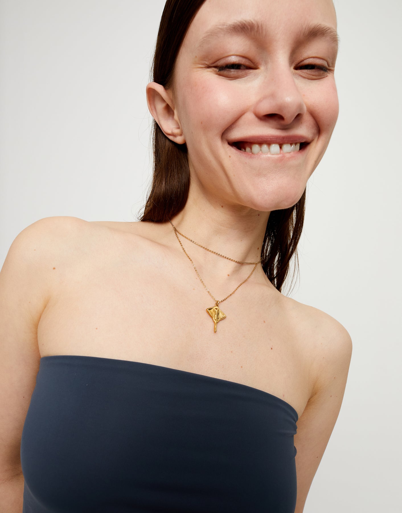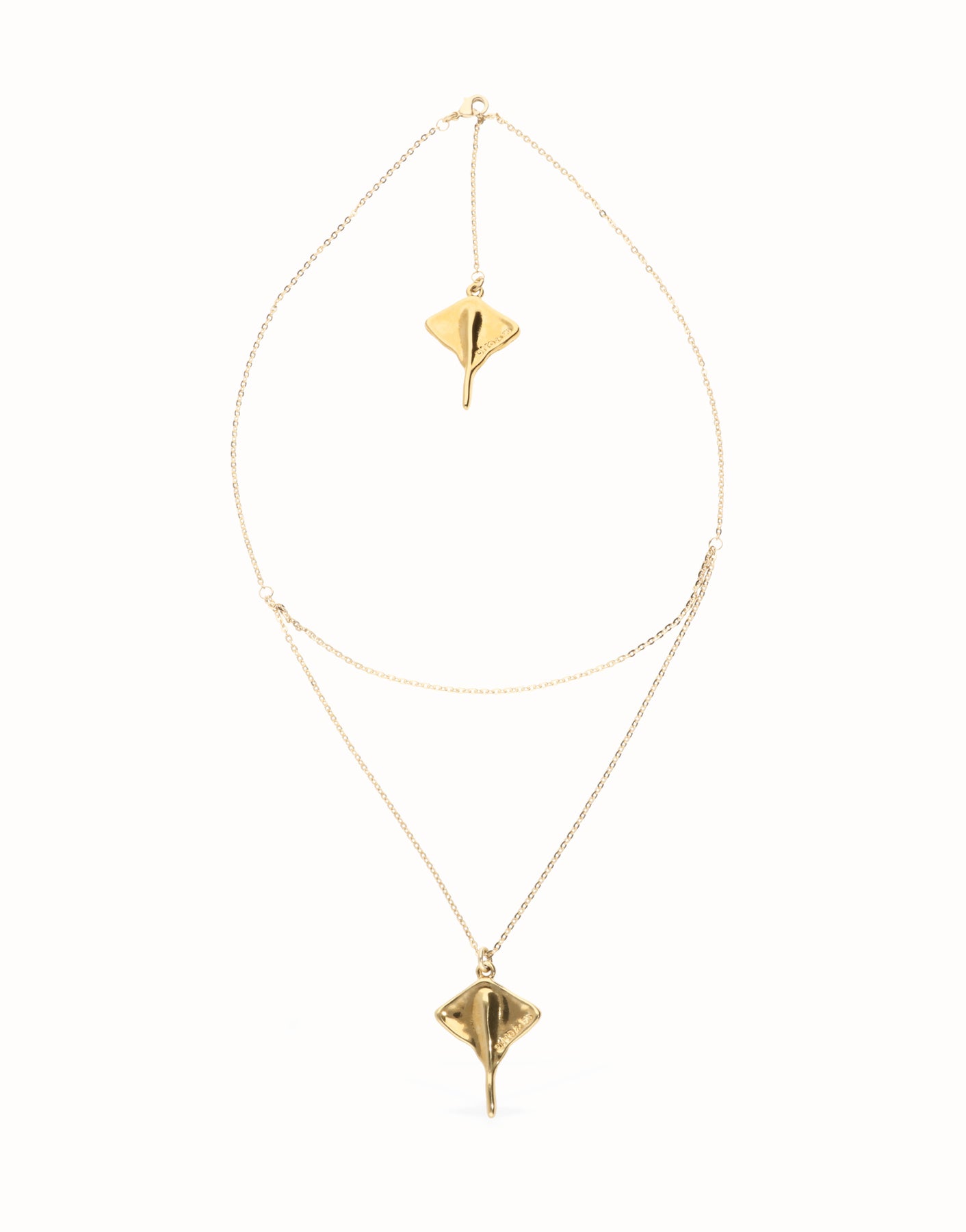 Double short chain pendant with stingray.Get the pieces of the collection Ser Majestuosa, a tribute to Puerto Rico island and its people due the elegance of the manta ray flapping through the sea.