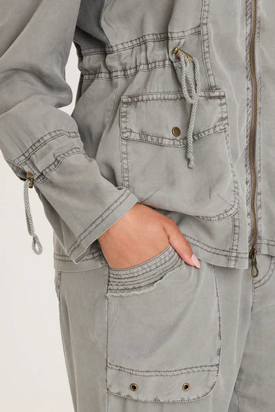 XCVI Hall Four Pocket Cinchable Twill/Rib Jacket in Magnetic Grey Pigment