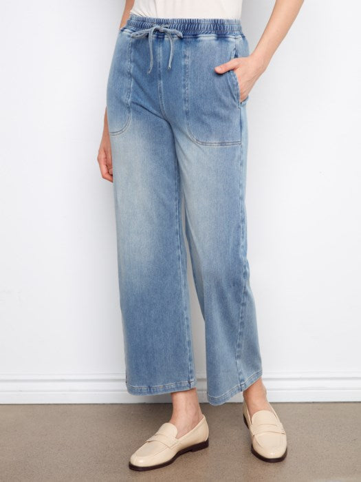Charlie B Knit Denim Wide Leg Jogger Pants