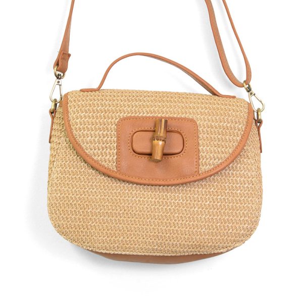 Joy Susan Natural Straw Hattie Bamboo Turnlock Top Handle Flap Crossbody