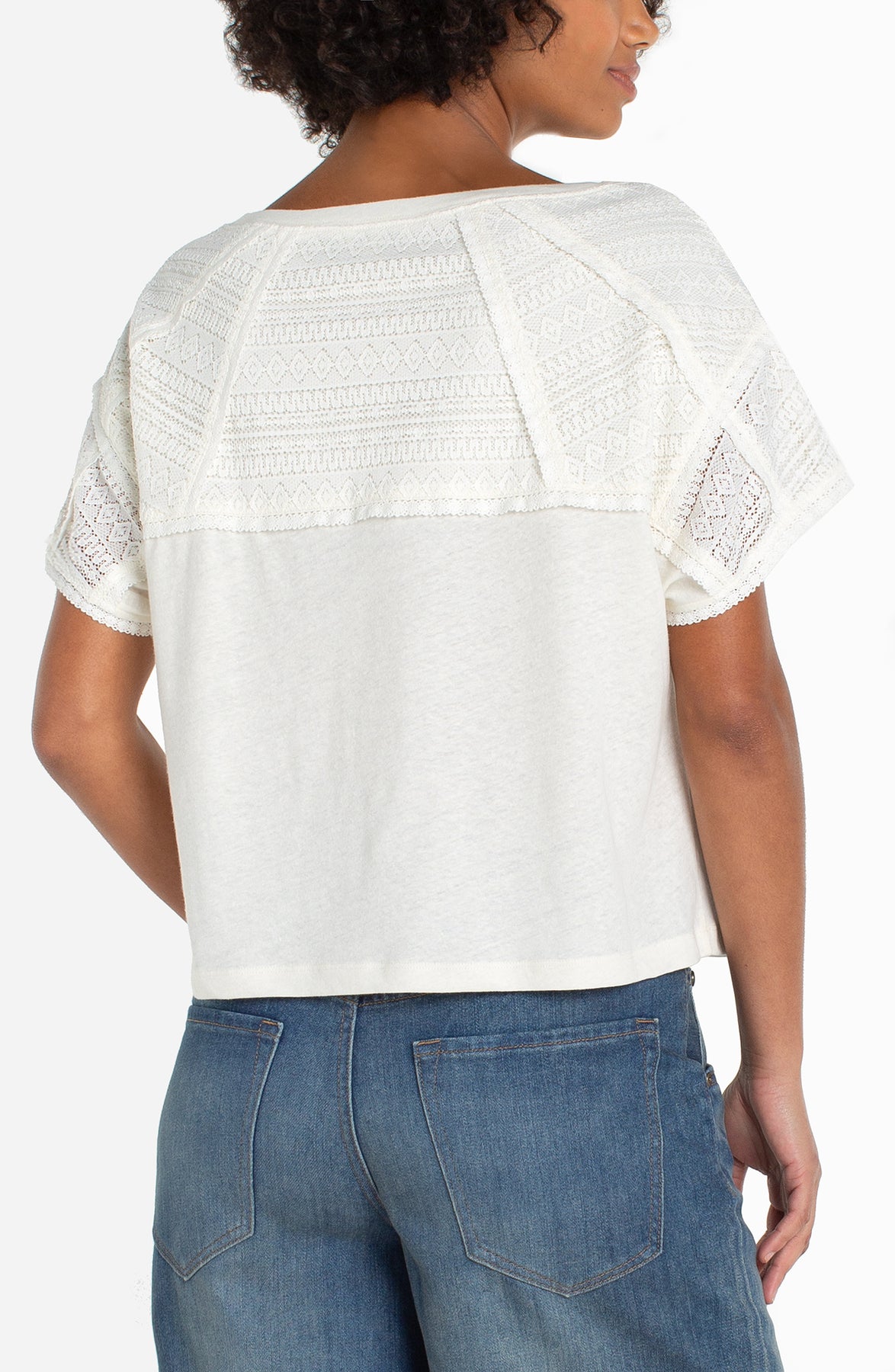 Liverpool Short Sleeve Dolman Lace Top - Whipped Cream