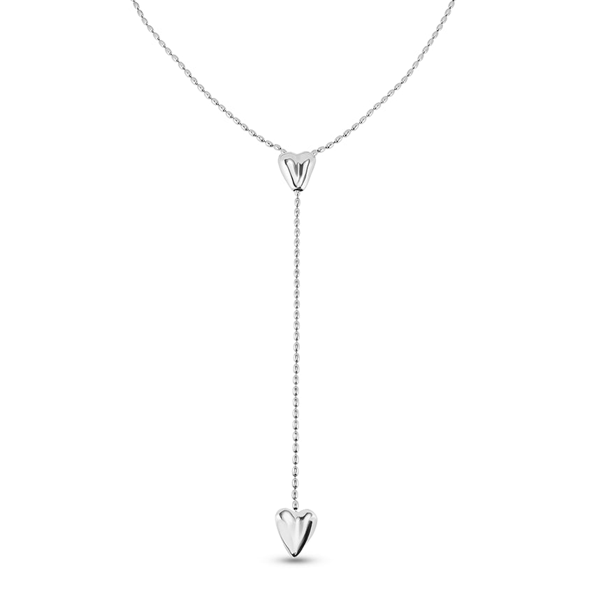 UNOde50 Long adjustable chain necklace with two hearts - Sterling Silver