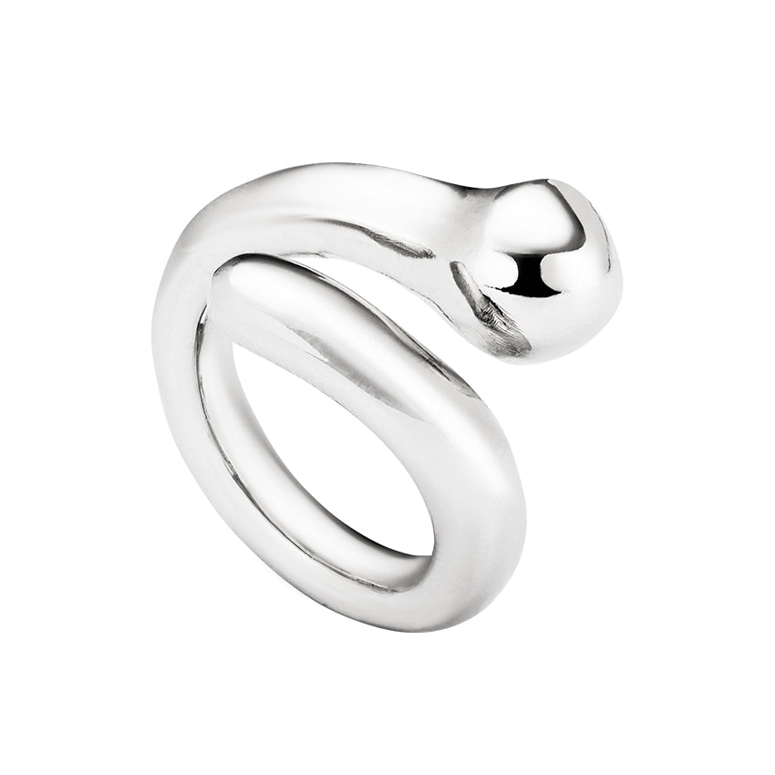 Sterling silver-plated metal alloy ring with an irregular design ending with a sphere. Jewel 100% handcrafted in Spain, achieving a unique design finish. Youthful collection. Jewel inspired by young, Free and careFree souls that will end up linking experiences until they reach maturity. Links of different sizes that sometimes come together to form special chains and bracelets, while on fingers and ears they untwine in a natural and sensual way. A modern collection ready to wear at any time or situation