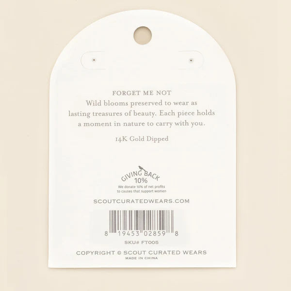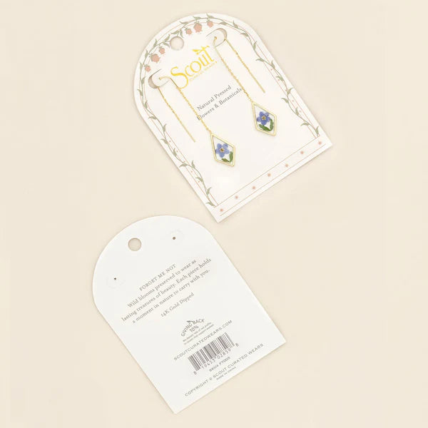 Wild blooms preserved to wear as lasting treasures of beauty; each piece holds a moment in nature to carry with you. Each earring features natural, pressed flowers sealed with 14K gold dipped accents.