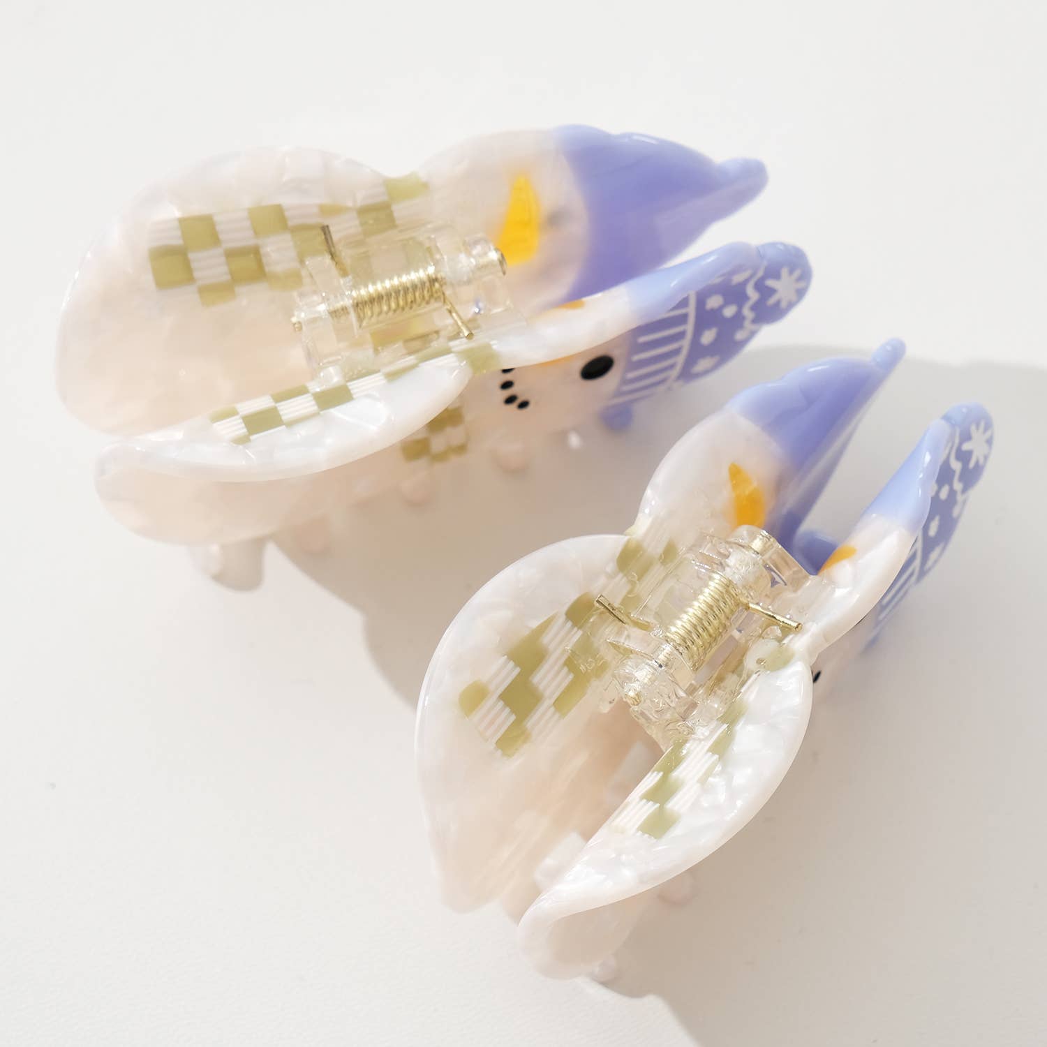Snowman Adorro Exclusive: designed in Chicago Our Snowman claw clip is winter ready! Featuring a checkered scarf, winter hat, and hand painted details. Made with eco-friendly material that is both durable and comfortable. Measurements: Materials: Cellulose Acetate (eco-friendly material) Cellulose Acetate is a synthetic fiber produced from plant derivatives such as wood pulp and cotton. CA is both durable and biodegradable. Compared to acrylic and PVC materials, you will see that our clips will last you longer. This material has flexible teeth allowing maximum comfort. *Each claw will have slight variations of color and pattern due to how the cellulose plates are cut during our production. *Actual colors may vary slightly from what appears online due to lighting and differences in monitors.