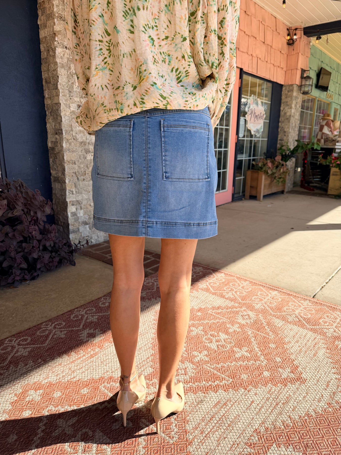 Tribal Comfort Stretch Audrey Pull-On Denim Skort Patch Pockets - Harbor