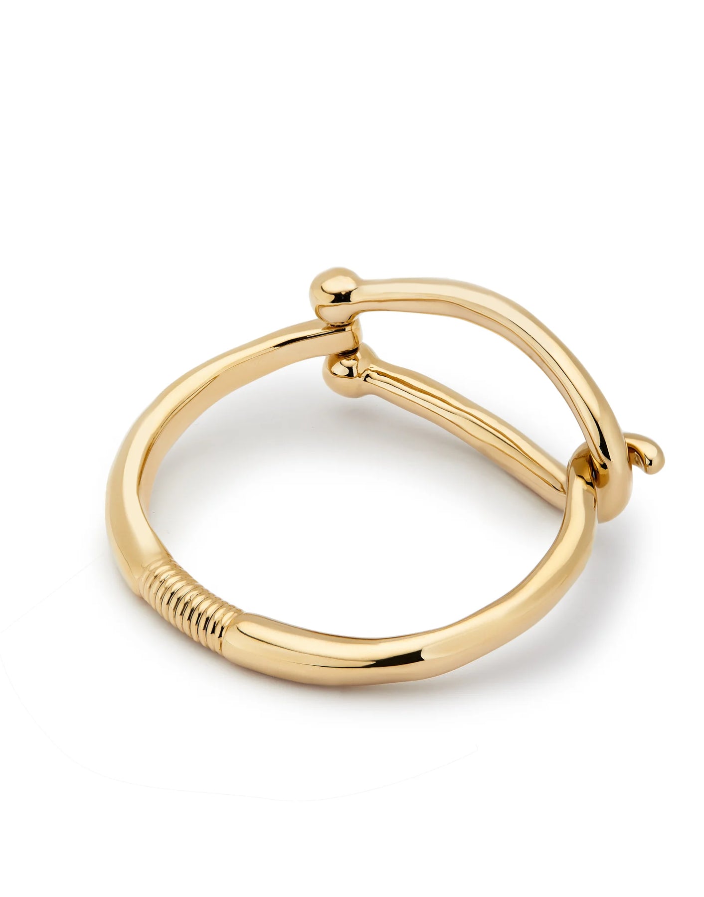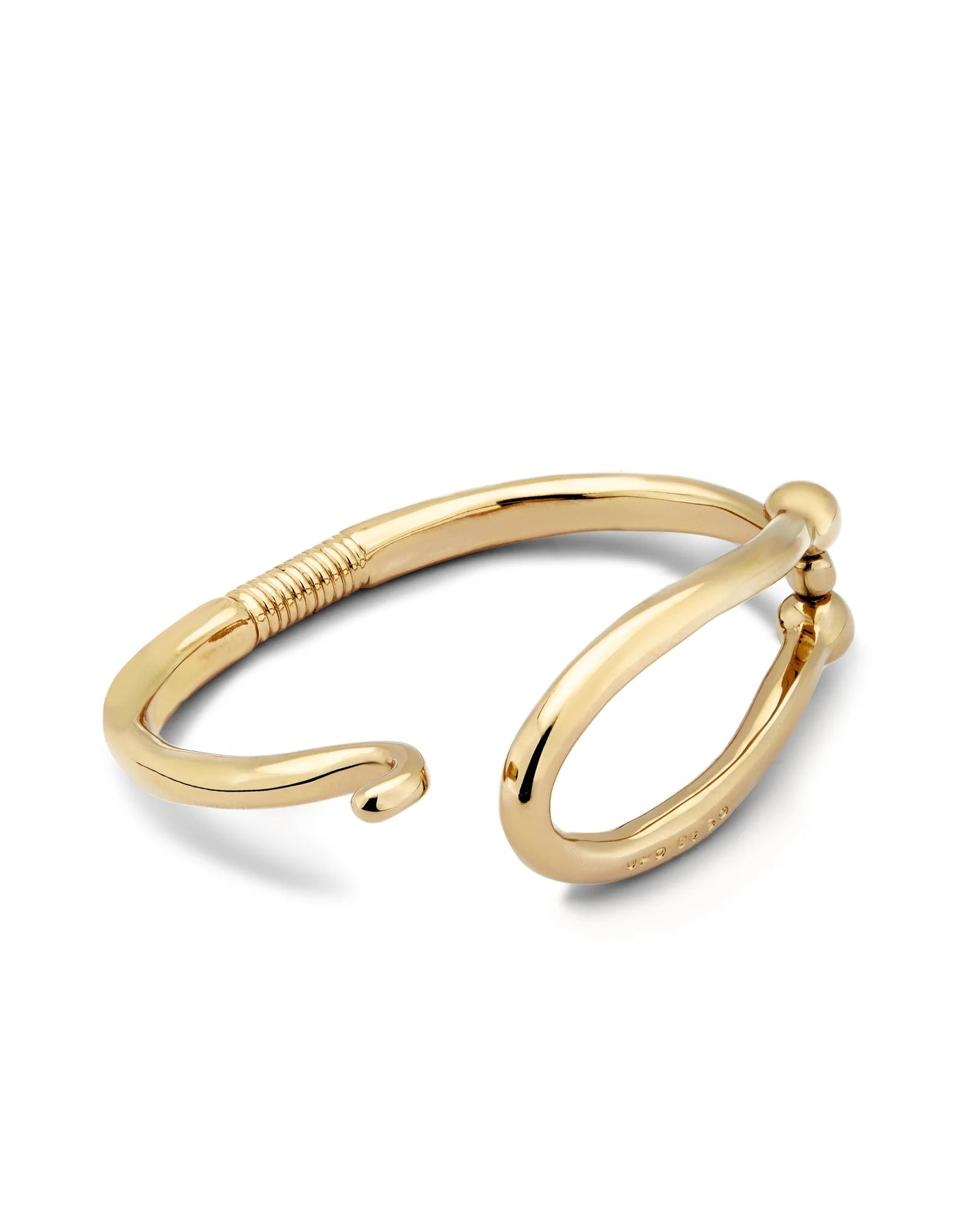 Rigid 18K gold-plated metal alloy bracelet with large link and inner spring. Jewel 100% handcrafted in Spain, achieving a unique design finish.