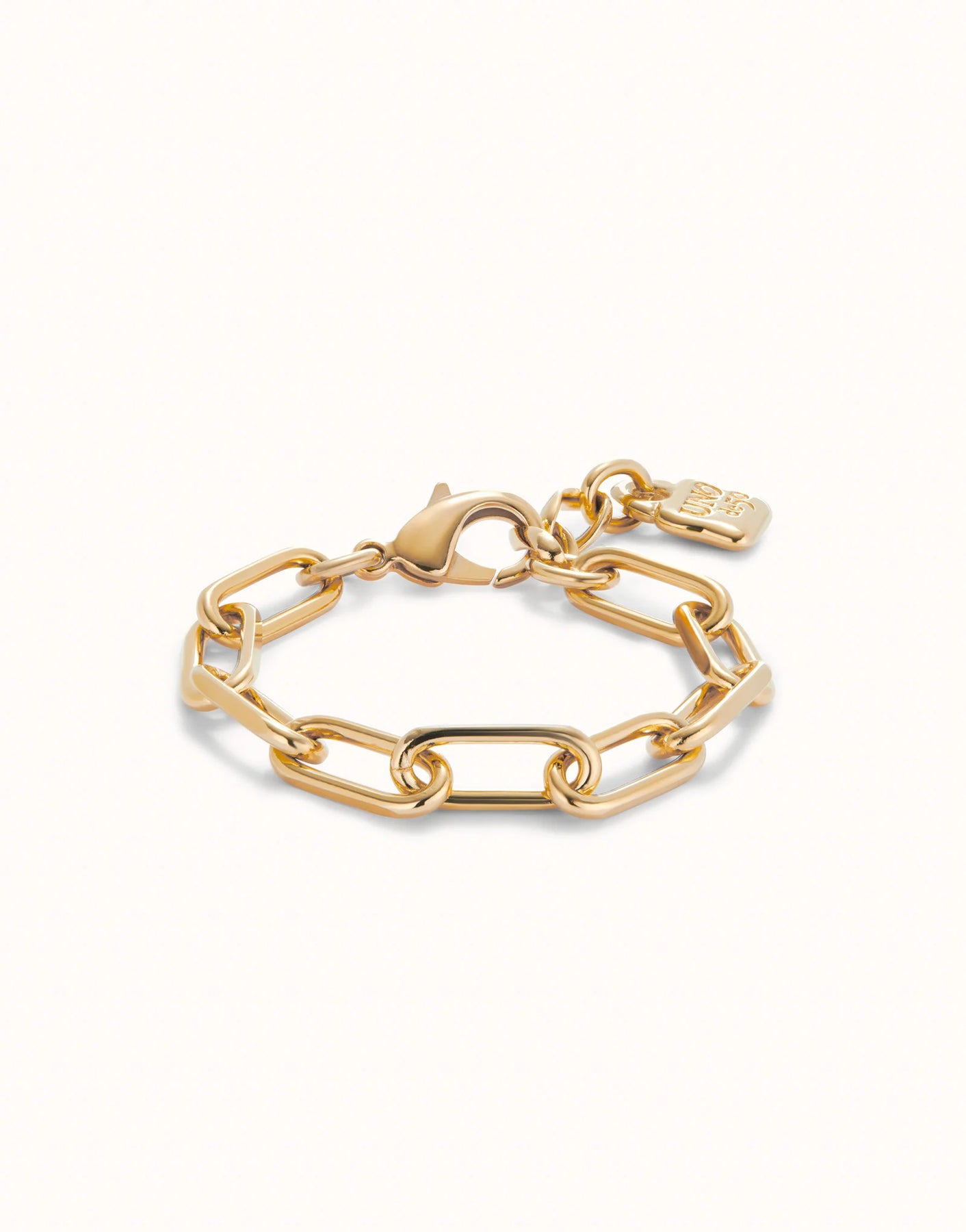 18K gold-plated bracelet with links. Made in Spain with a 100% handmade process.Now is the time to trust your instincts and choose jewelry that you always wanted but never dared to wear. Choose links if you dare to go further. Discover the collection ser valiente.