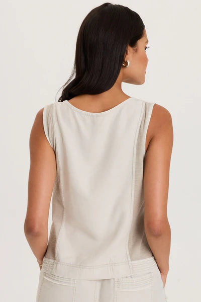 Embroidered floral and scale design caress the front of this structured tank. Featuring a twill front and jersey side panels for a cozy fit.